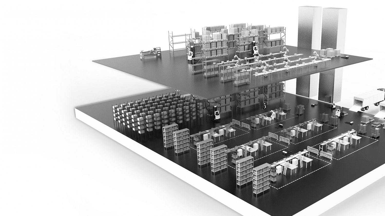 AGV智能交通系统能在AGV无人叉车运行过程中,根据AGV无人叉车的运行状态、关键路段的流量,实时调整交通管制策略,有效实现AGV无人叉车的合理分配。AGV智能交通系统能够自动识别现实的工作环境,并将道路信息数据化,形象化,能够更直观地观察环境状况,针对不同现场的空间情况,灵活调整交通管理配置,指挥AGV无人叉车安全高效地完成任务。