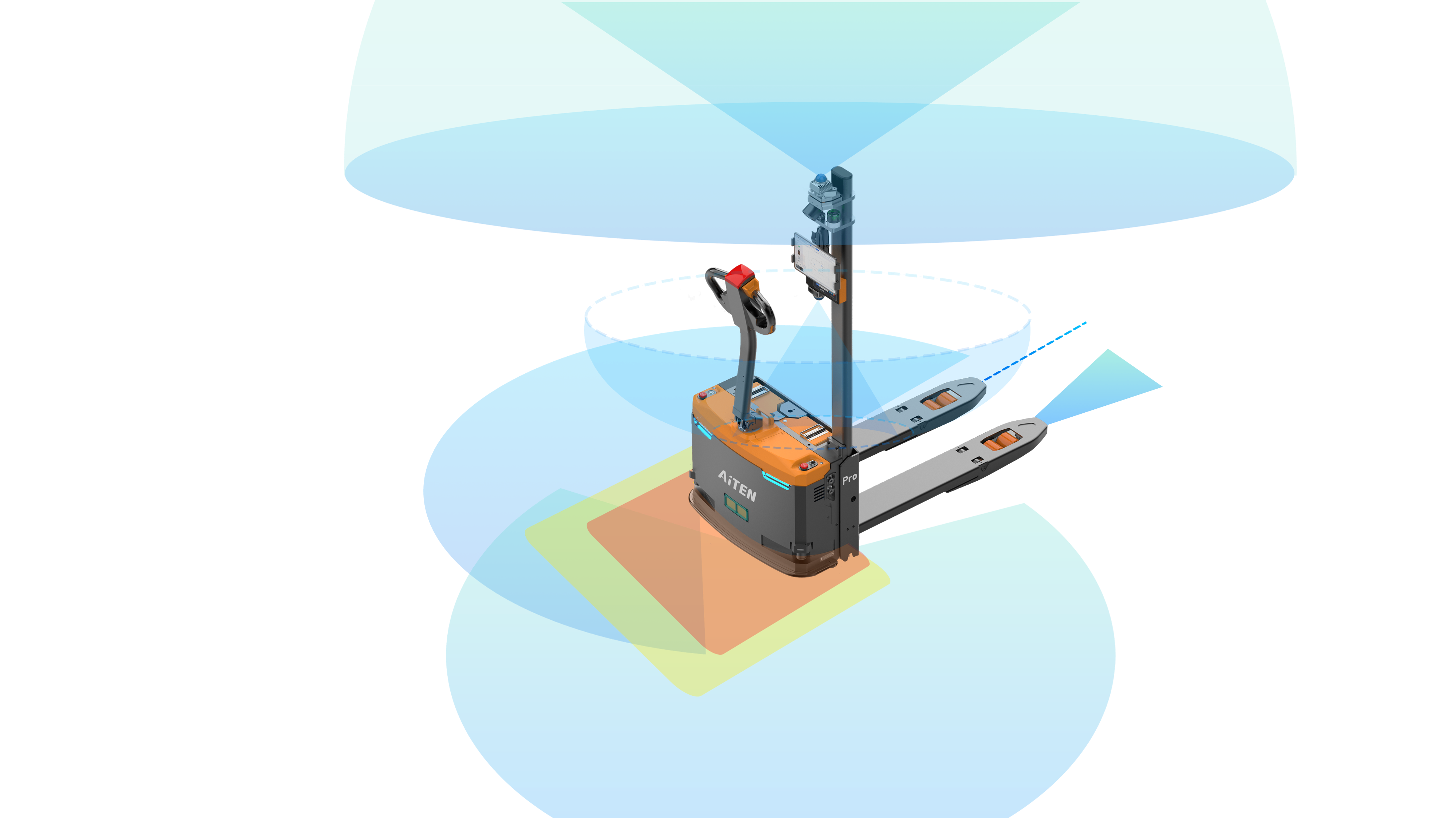 紧急制动:若障碍物进入 0.5 米范围内,AGV 叉车将立即停止,并通过声光报警提示周边人员。